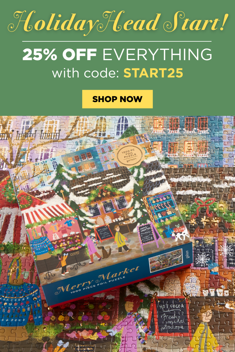 This 1000-piece puzzle showcases Michael Storrings' renowned illustrative style capturing the quintessential holiday atmosphere of Greenwich Village. The composition features meticulously rendered architectural details of iconic brownstones adorned with seasonal decorations, set against a backdrop of New York City's distinctive urban landscape. Each precision-cut piece contributes to a challenging assembly experience, with Storrings' signature use of color gradients and intricate detailing providing both visual cues and strategic complexity. The completed puzzle measures approximately 20" x 27", offering an excellent representation of this celebrated artist's work that captures the nostalgic charm and festive ambiance of a Greenwich Village Christmas.
