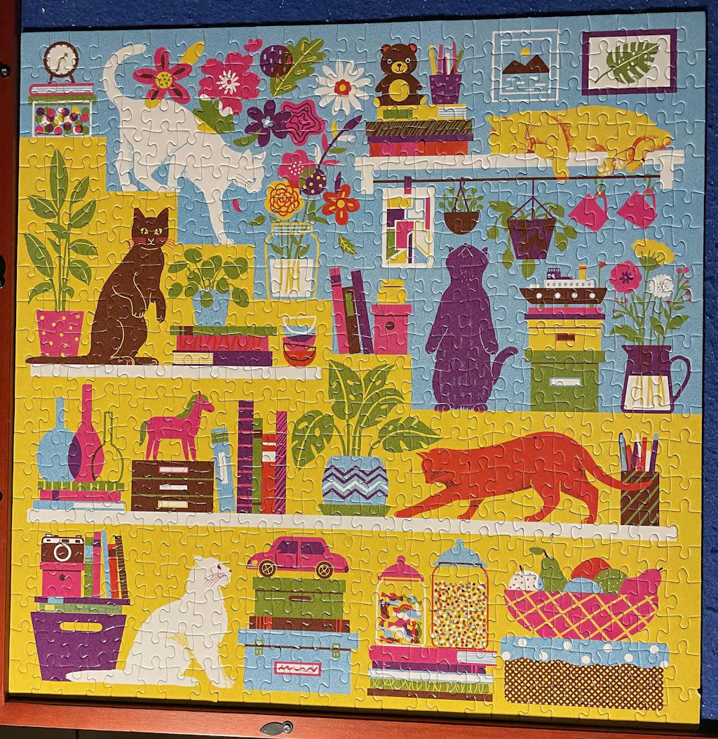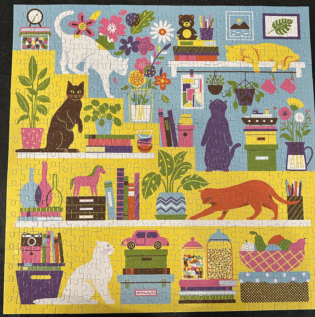 Piece together the Curious Cats 500 Piece Family Puzzle from Galison to reveal an array of our favorite feline pranksters! This amusing illustration is a great family activity for adults and children to enjoy together. Puzzle pieces come packaged in a sturdy and easy-to-wrap box, perfect for gifting, reuse, and storage.
