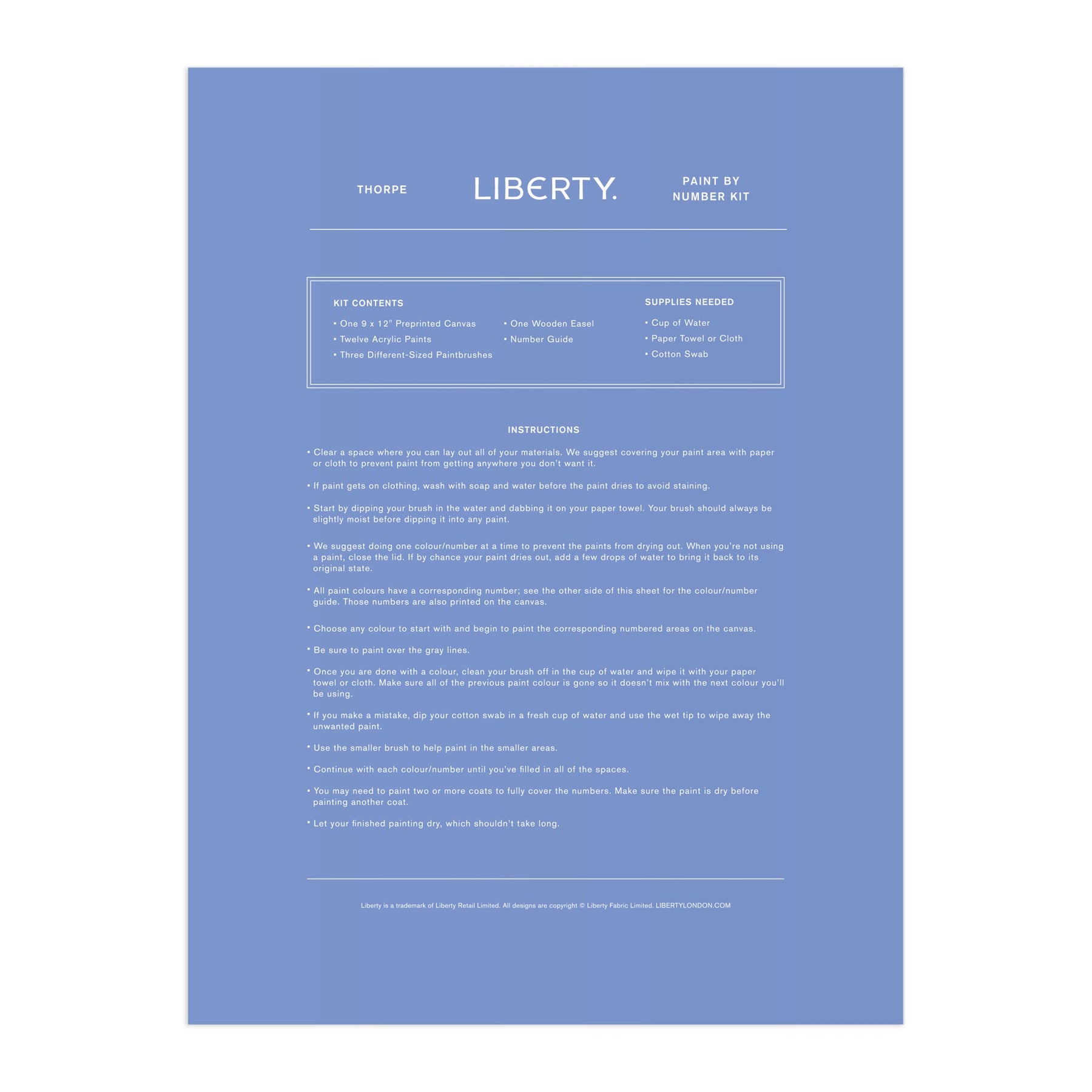 This Liberty 9 x 12 Paint by Number Kit Thorpe presents an exceptional artistic opportunity to recreate the distinguished Thorpe pattern from Liberty's prestigious textile archive. The comprehensive kit includes precisely color-matched acrylic paints that capture the nuanced palette of the original design, complemented by fine-tipped brushes for intricate detail work. The premium 9 x 12 inch canvas board features meticulously numbered sections corresponding to each paint color, ensuring accurate reproduction of the pattern's sophisticated elements. Ideal for art enthusiasts seeking both creative engagement and a connection to Liberty's storied design heritage.