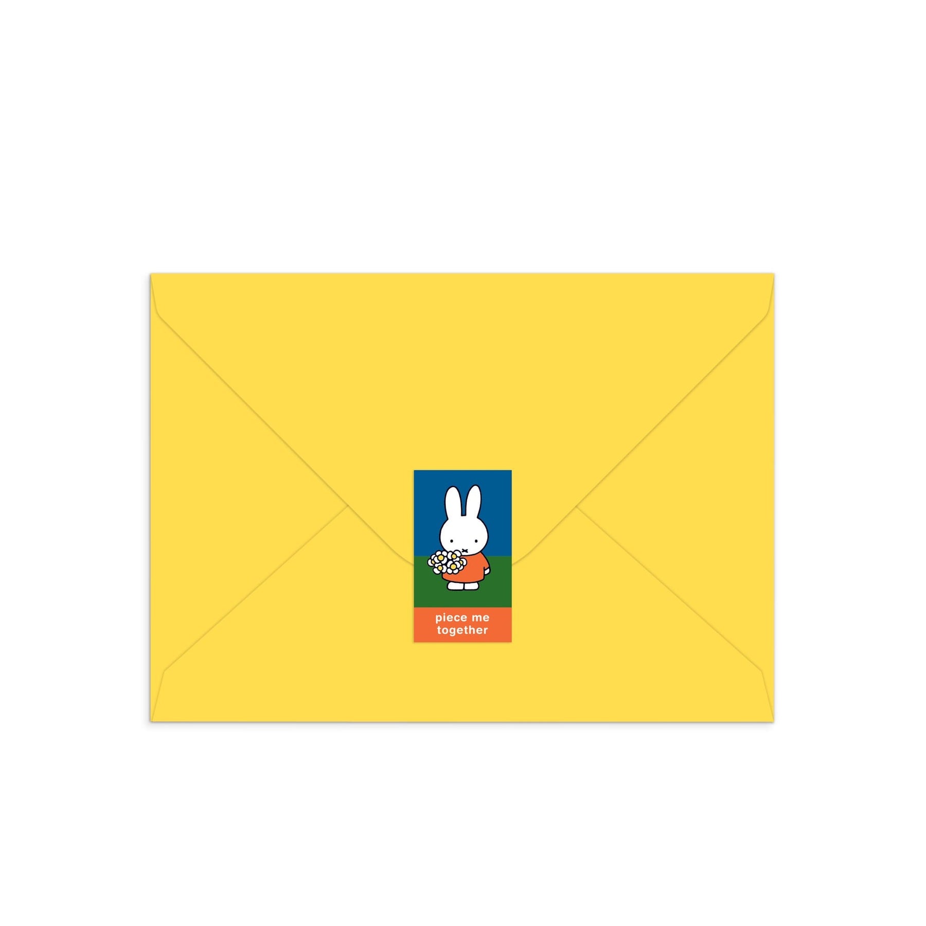 Discover the charm of Miffy, Dick Bruna's iconic character beloved by generations worldwide. Created in 1955 from bedtime stories told during a vacation in the Netherlands, Miffy has become a global icon. Send a puzzle in the mail to someone you love with the Miffy with Flowers Greeting Card Puzzle. Simply write your note on the back of the assembled puzzle, break apart the pieces, and seal the envelop before mailing to your loved one! Only 60 pieces and perfect for Miffy enthusiasts of all ages, it delivers a memorable experience that extends beyond traditional cards.